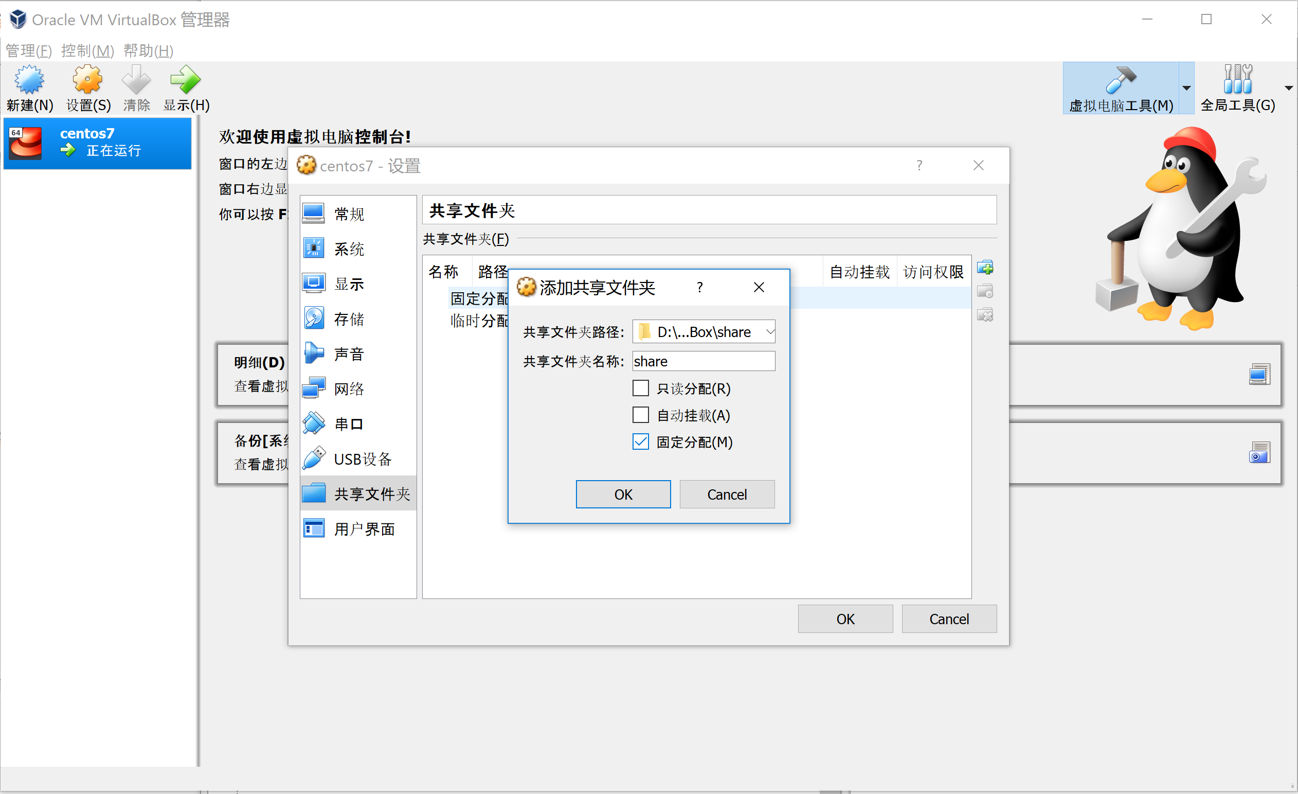 配置 VirtualBox共享文件夹